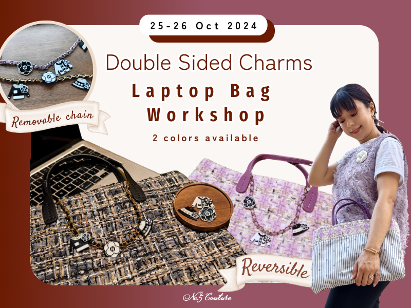 Hand craft your own Laptop Bag with Chanel Logo Fabric and Tweed. Design it with iconic charms and turn it into a most stunning bag that fits your laptop and other items throughout the days