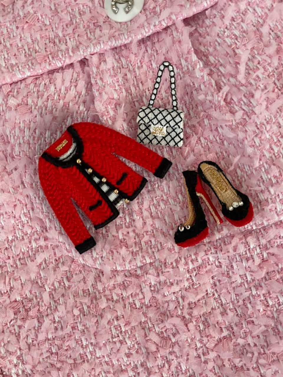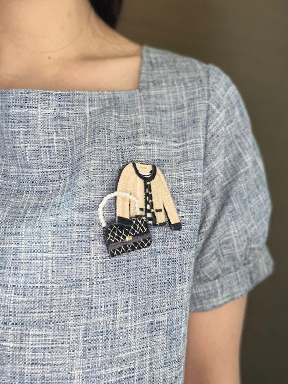 Embroider your favorite say handbag, shoes, tweed jackets into brooch and wear them out from head to toe.