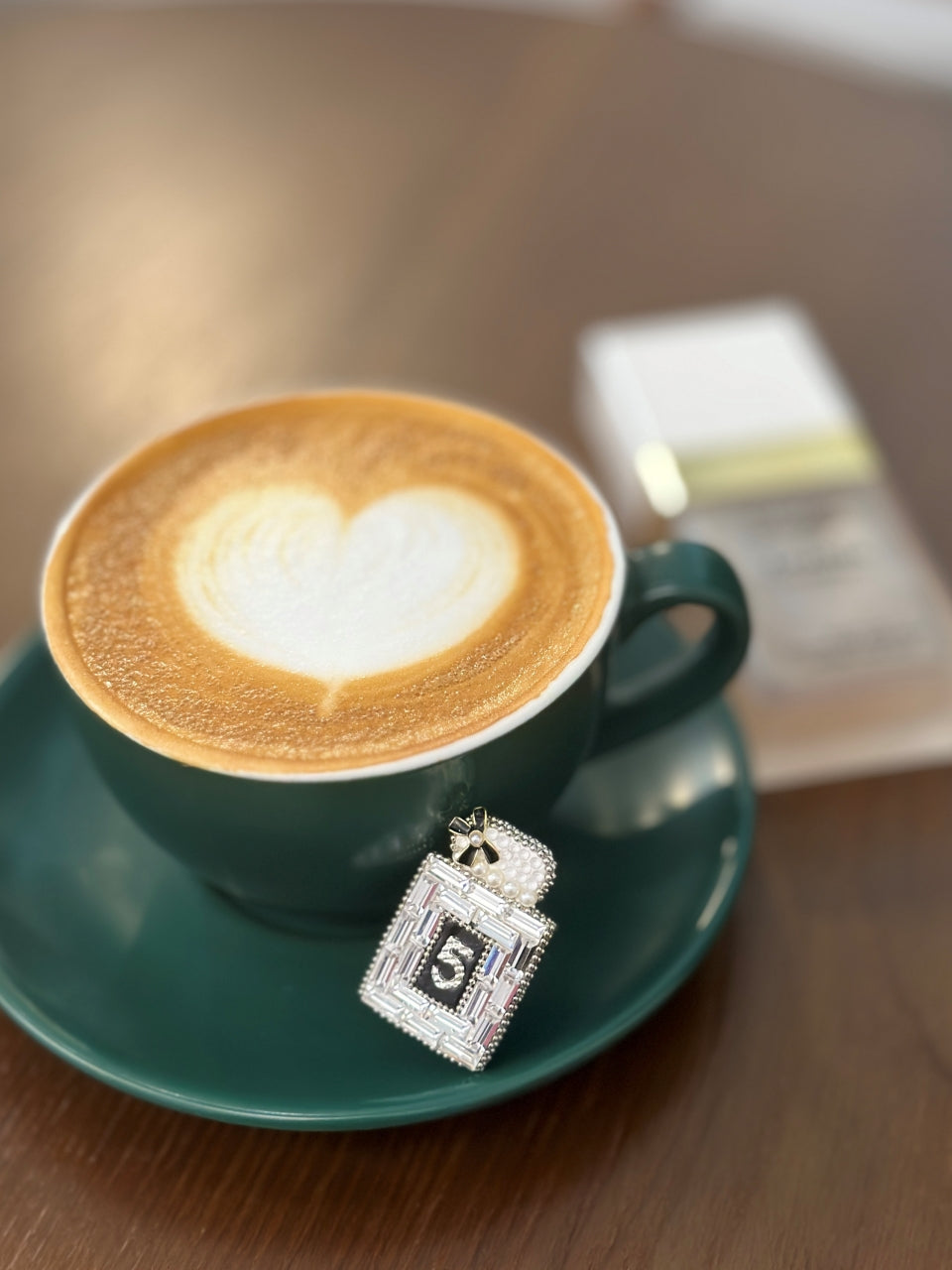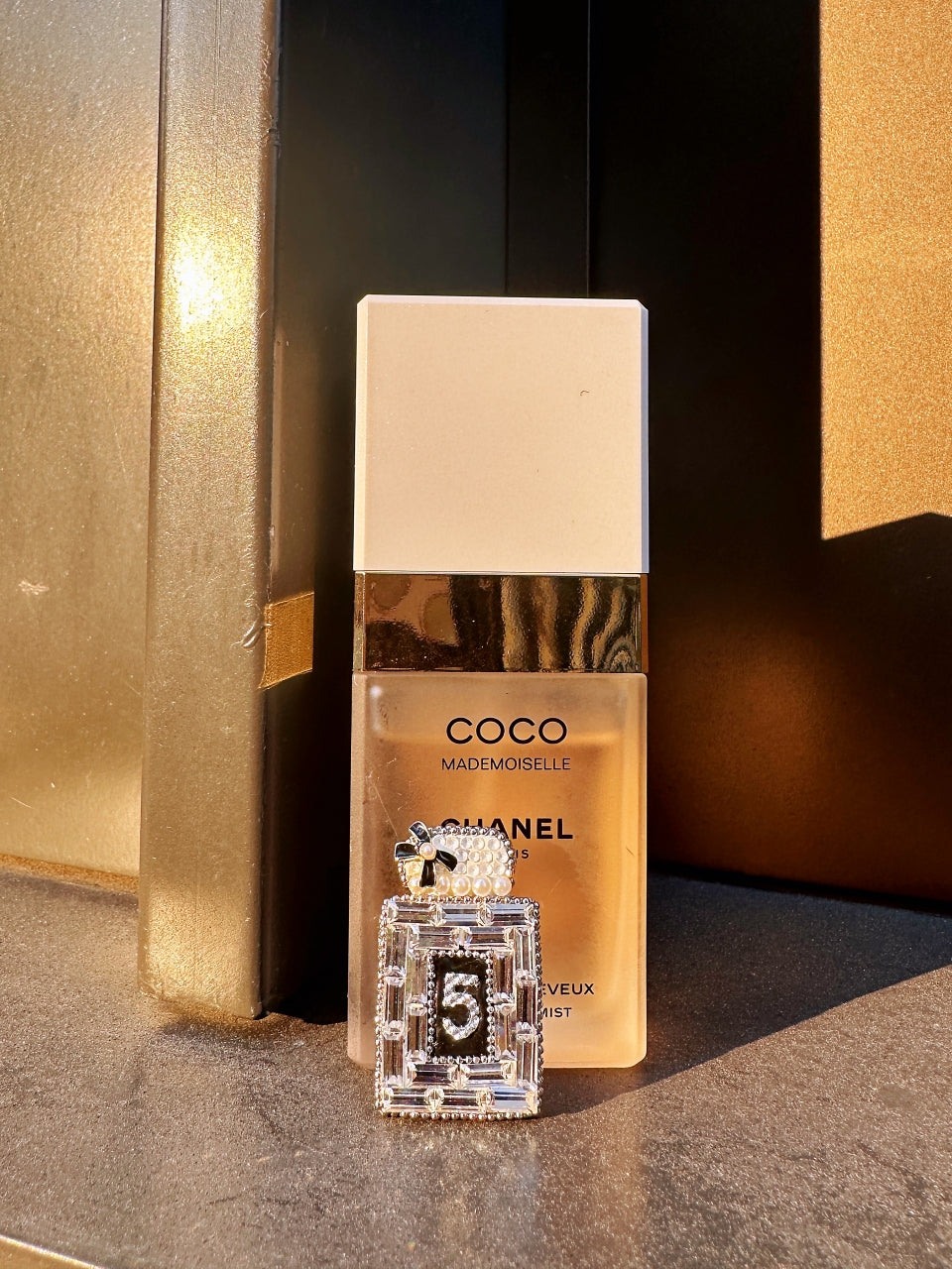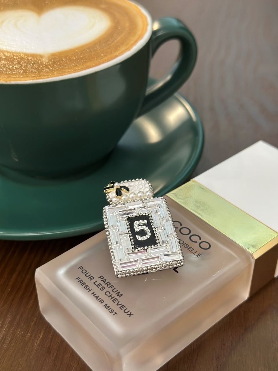 Sparkling Mini Version of Perfume Brooch decorated with pearls and micro ribbon on it! How can we miss it.
