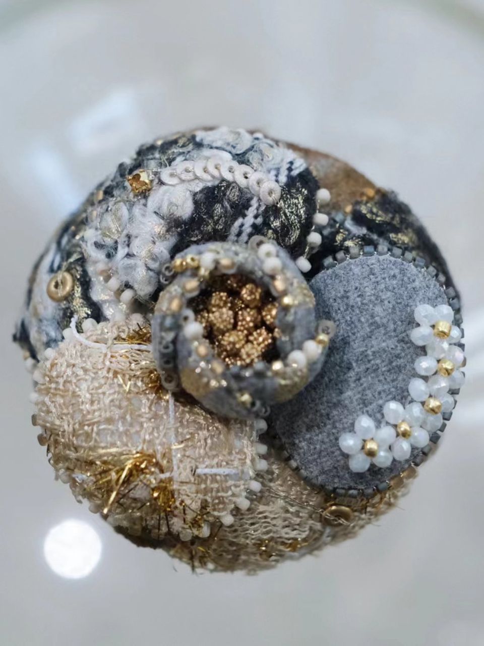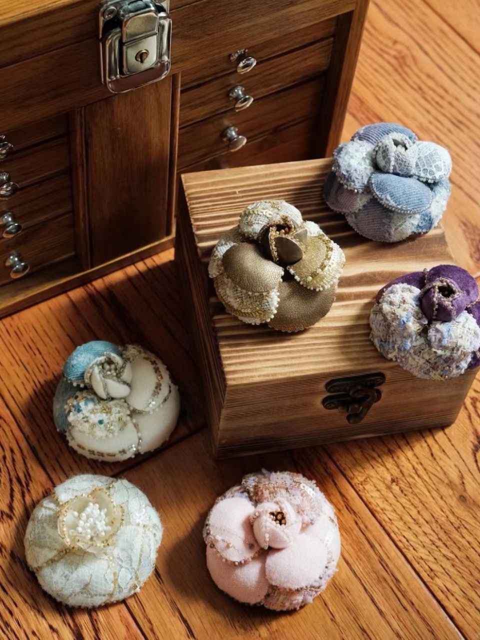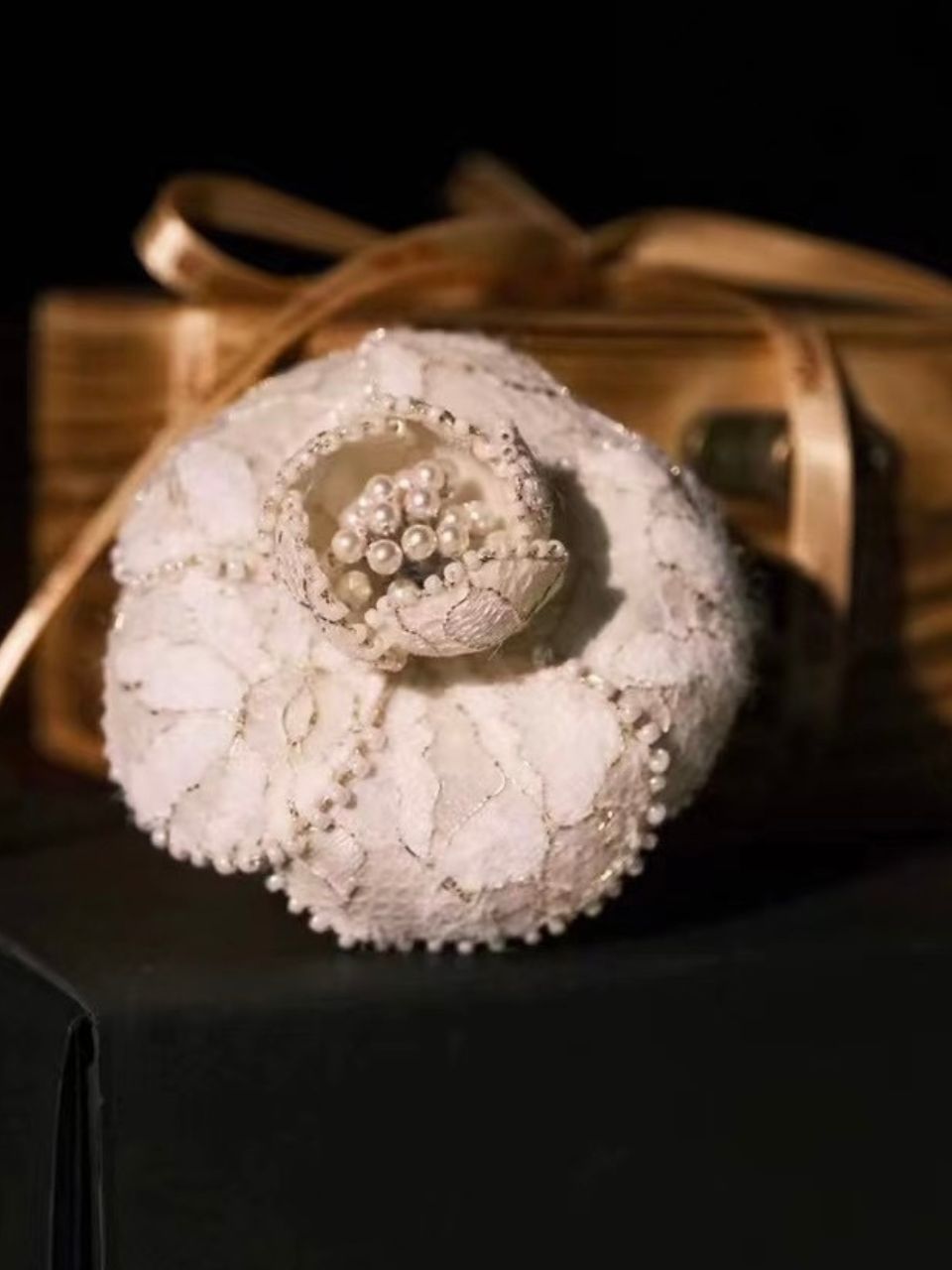 Using 3 fabrics for petals and embellished with beads and sequins. Exquisite Camellia Brooch is Done!